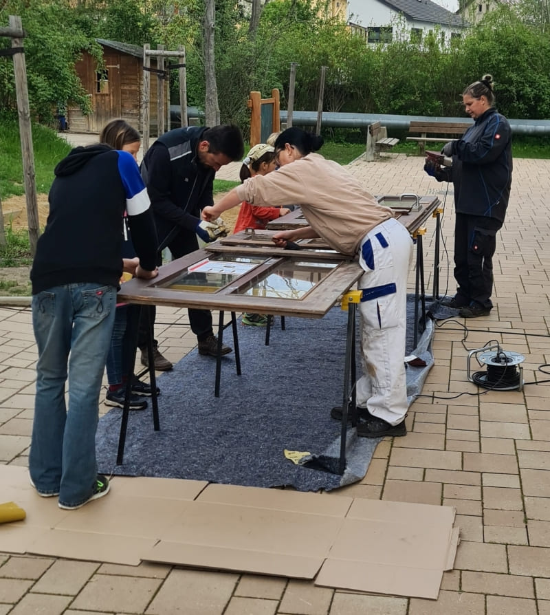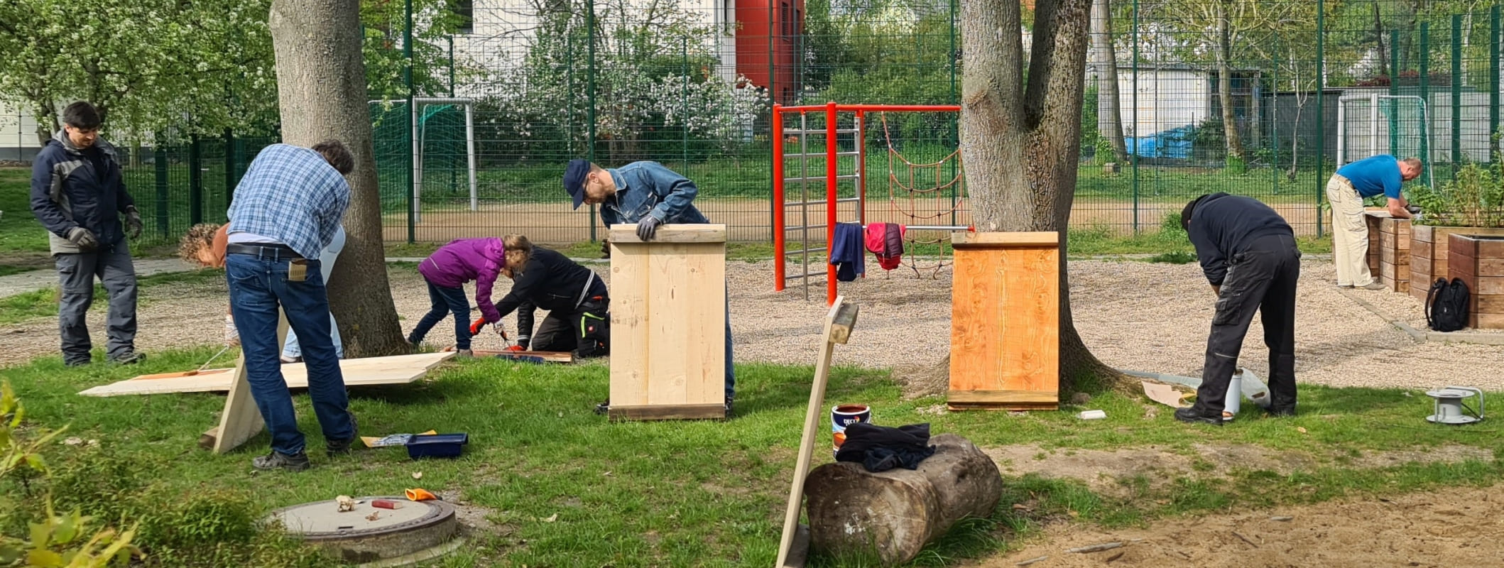 Am 06.05.2023 haben viele fleißige Hände geholfen, unser Schulgelände schöner zu gestalten. So wurden zwei neue Hochbeete für den Sachunterricht gebaut, das Eingangstor und das Geländer zur Turnhalle gestrichen sowie die sehr alte und in die Jahre gekommene Turnhallentür aufpoliert. Ein großes Dankeschön an alle Eltern, Kinder und Mitarbeiter, die uns hierbei tatkräftig unterstützt haben!